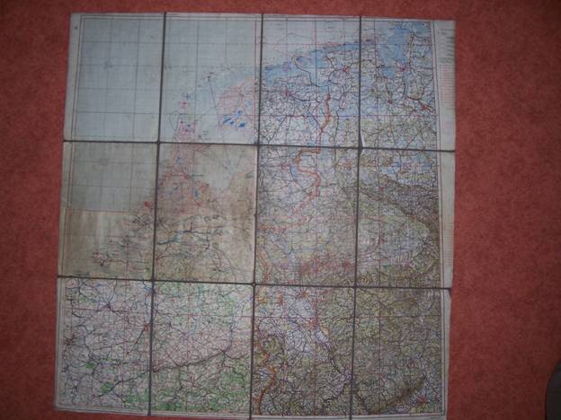 Hier een Duitse Fliegerkarte waarvoor o.a. een Engelse RAF kaart is gebruikt.