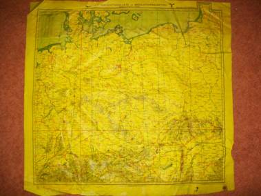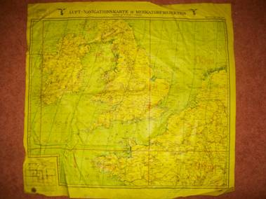 De nachtvlieger maakte gebruik van deze gele kaarten. De kaart is direct op het gele linnen gedrukt. Het lijkt of de linnenstof van een laag rubber is voorzien. Dit noemen ze : Textoplast-stoffenkarte. De hogere kaart nummers, kom je regelmatig tegen, kaarten van West Europa zijn zeldzamer. De kaart is aan beide kanten bedrukt: Blad nr 1 Duitsland en Bald nr 2 Nederland, België, Noordwest Frankrijk Zuid Engeland en Ierland.