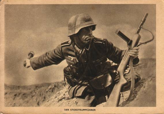 Propaganda ansichtkaart waar de kaarttas goed te zien is, uitgegeven door het propaganda tijdschrift: “die Wehrmacht”. Aufn,: PK. Schröter – Scherl.