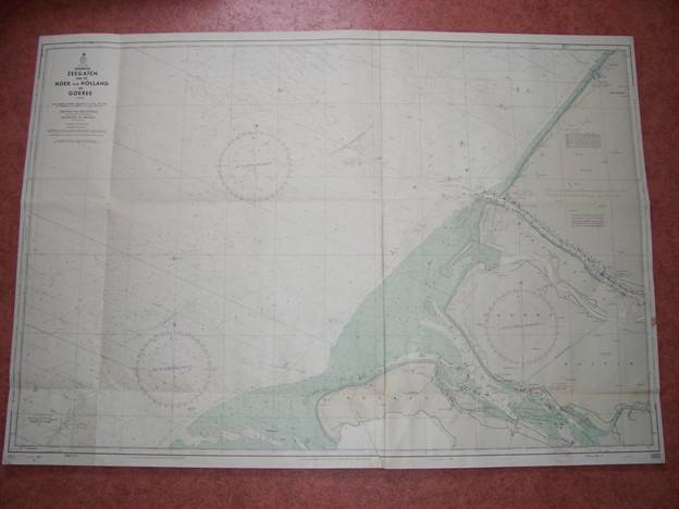 Hier twee kaarten uitgegeven door het Ministerie van Marine Hydrografisch bureau. De kaarten heb ik in de jaren ’90 gekocht bij de Slegthe. Ze hadden hier een hele stapel hydrografische kaarten liggen van 1920 tot 1970. Helaas waren die van Zuid Holland van recente datum, maar hierdoor niet minder interessant en oud worden ze vanzelf, daar hoef je niks voor te doen.